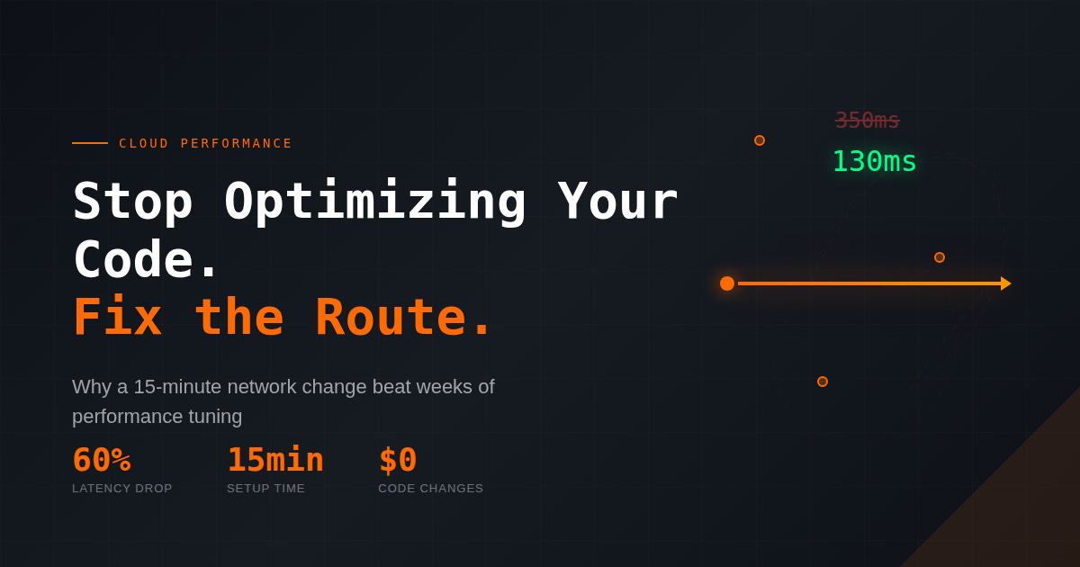 Backend in Tokyo. Users in Jakarta and Melbourne are churning. They spent weeks on CDN tuning, database optimization, and frontend rewrites.