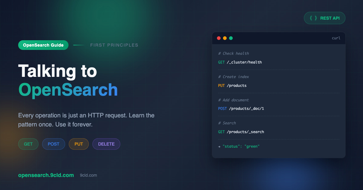 Here is what nobody tells you. OpenSearch is just a web server. It listens on port 9200. It accepts HTTP requests. It returns JSON responses.